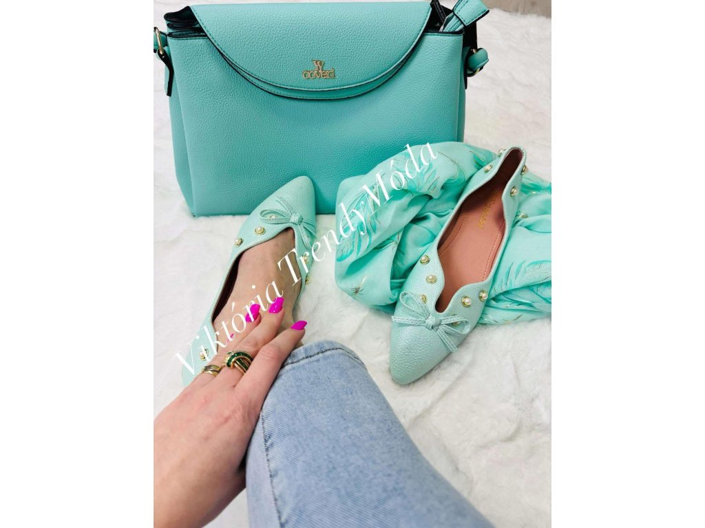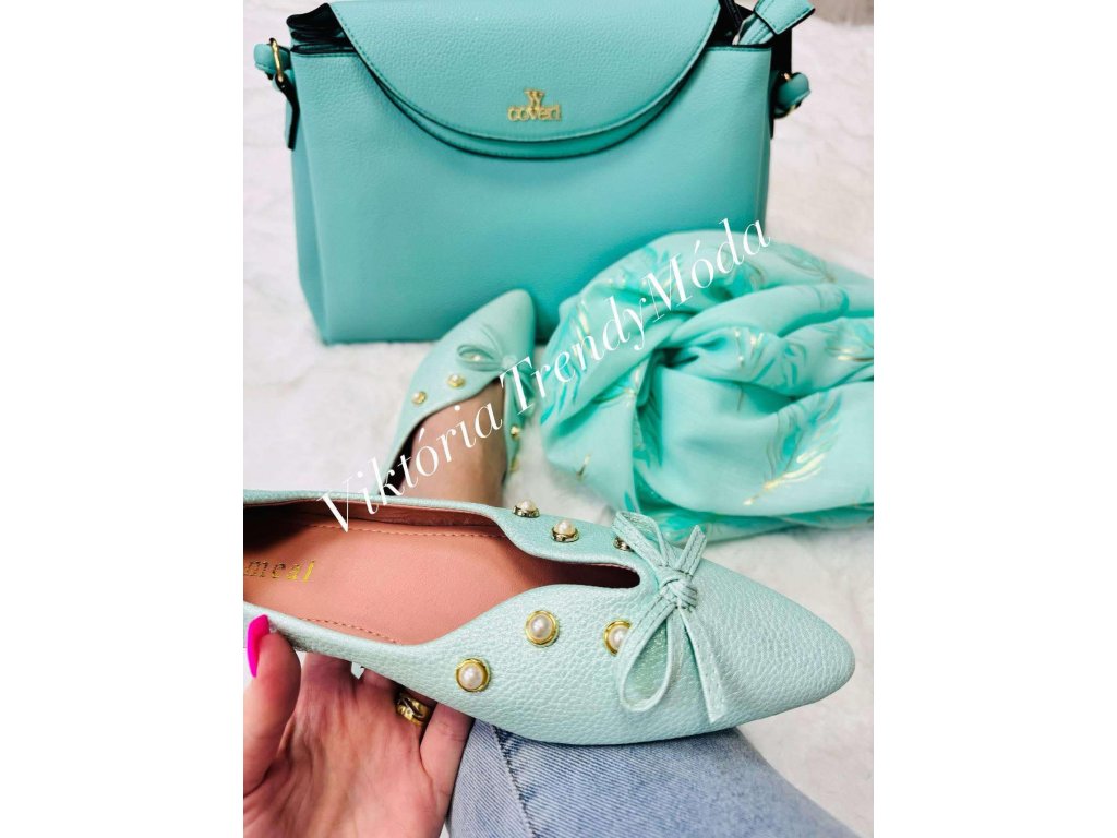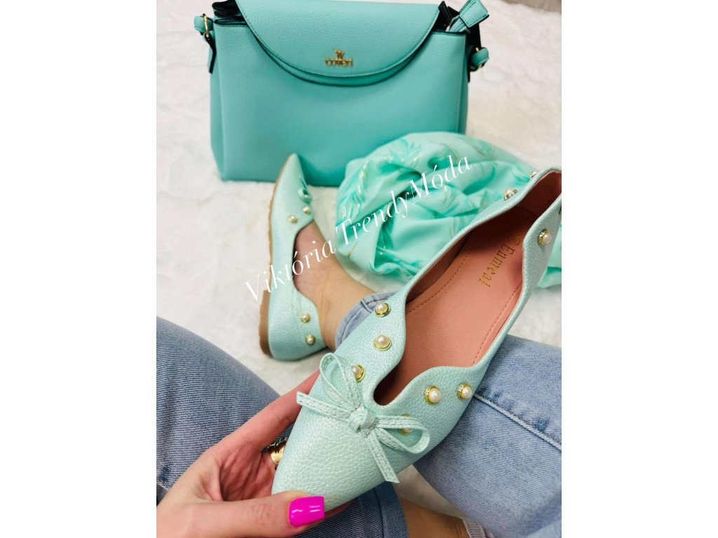 Doprajte si dávku elegancie a sviežosti s našimi balerínami Mint Elegance! Tieto štýlové topánky v jemnej mätovej farbe sú dokonalým doplnkom pre každú modernú ženu. Ich jemný koženkový povrch je zdobený decentnými zlatými cvočkami, ktoré dodávajú topánkam luxusný vzhľad. Ozdobná mašľa na špičke pridáva romantický a ženský šarm, zatiaľ čo hlbší výrez zabezpečuje pohodlie a stabilitu pri chôdzi. Ideálne na každodenné nosenie do práce, na kávu s priateľkami alebo na špeciálne príležitosti, kde chcete zažiariť.