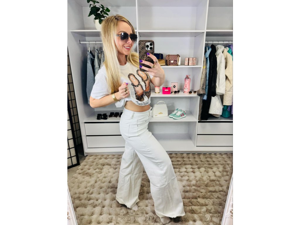 Štýl a elegancia v jednom! Tieto biele wide-leg rifle sú dokonalou voľbou pre ženy, ktoré milujú trendy a zároveň pohodlné kúsky. Vysoký pás krásne tvaruje postavu a široké nohavice dodávajú outfitu uvoľnený, no zároveň sofistikovaný vzhľad. Skvelo sa kombinujú s crop topmi, oversized sakami či jednoduchým tričkom.