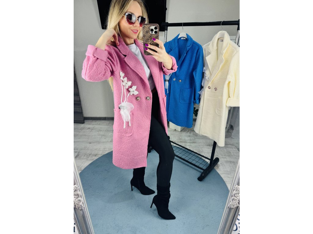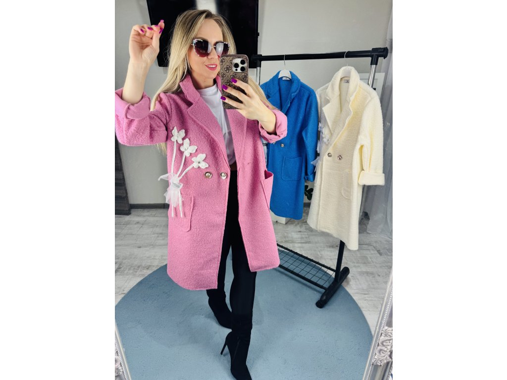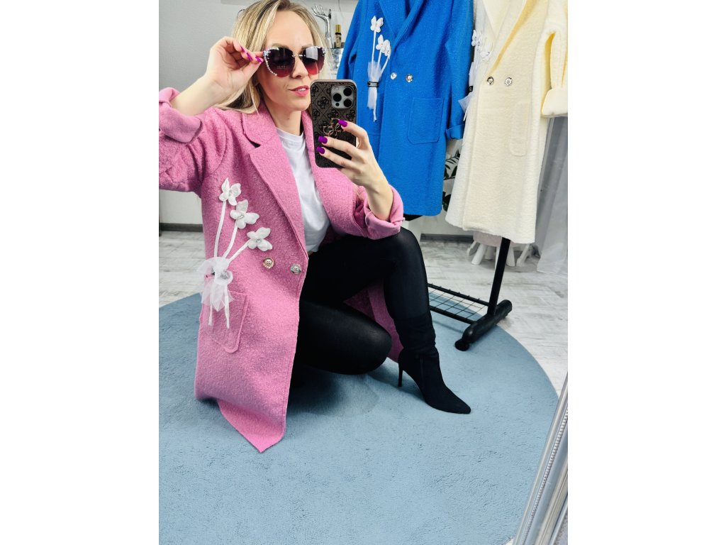 Buď elegantná a originálna s týmto nádherným kabátom v jemnom odtieni! Pohodlný, hrejivý materiál ťa zahalí do príjemného tepla, zatiaľ čo štýlové dvojradové zapínanie a jedinečná aplikácia s kvetmi dodajú tvojmu outfitu romantický nádych. Perfektný na chladnejšie dni, keď chceš vyzerať štýlovo a cítiť sa pohodlne!