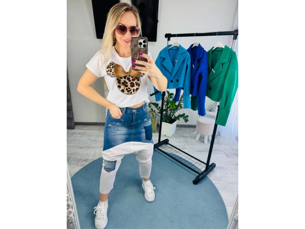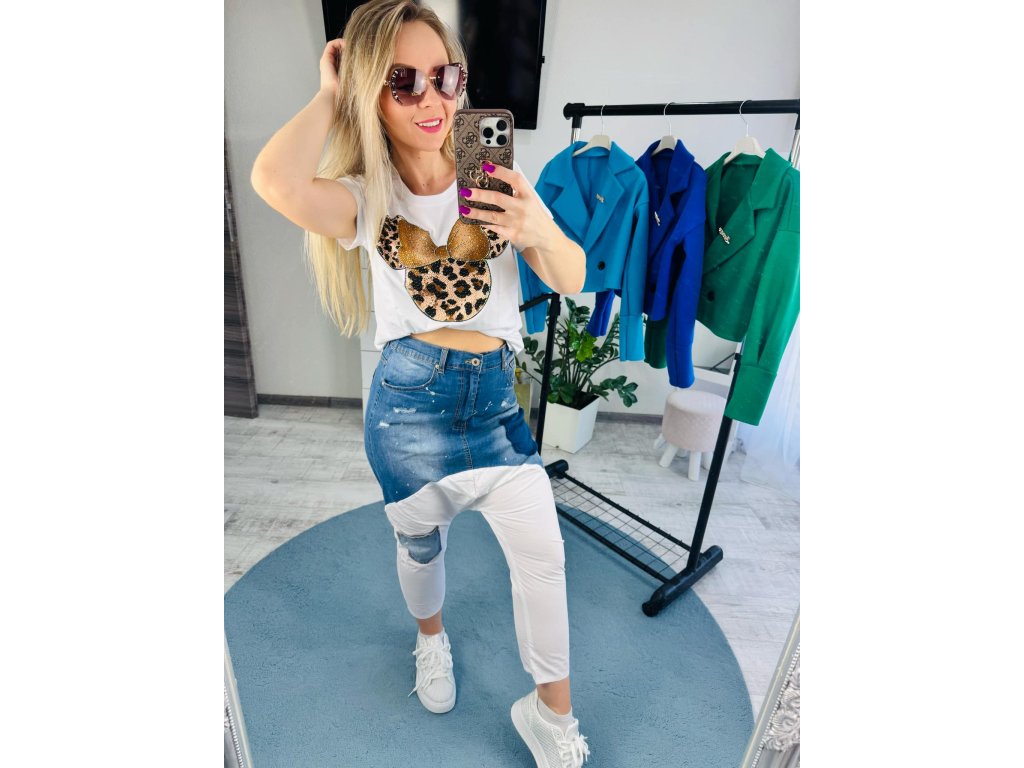 Objavte jedinečný štýl s našimi dámskymi pudláčovými rifľami "Denim Fusion"! Tieto trendy rifle kombinujú klasický denim s moderným dizajnom – vrchná časť je vyrobená z modrej rifľoviny s jemným ošúchaným efektom, zatiaľ čo spodná časť je z bielej látky s pohodlným pudláčovým strihom. Rifle majú vysoký pás, ktorý krásne zvýrazní vašu postavu, a praktické vrecká pre každodenné pohodlie. Skombinujte ich s obľúbeným tričkom a teniskami pre dokonalý streetstyle look!