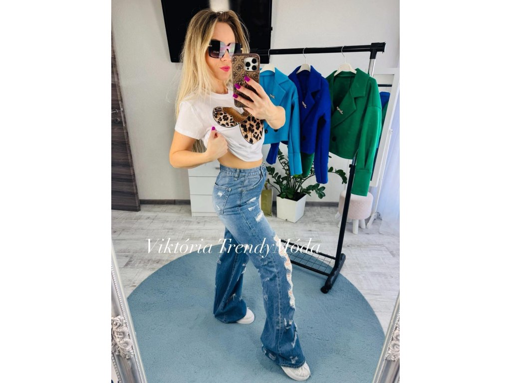 Štýlové roztrhané wide-leg rifle Rebel Chic