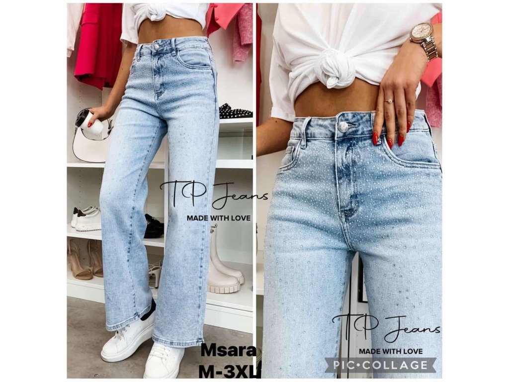 Predstavujeme vám dámske rifle Sparkle , ktoré dodajú vášmu outfitu šmrnc a eleganciu! Tieto svetlomodré rifle s vysokým pásom sú zdobené jemnými trblietavými kamienkami, ktoré krásne odrážajú svetlo a vytvárajú jedinečný efekt. Ich pohodlný strih dokonale sadne na každú postavu a poskytne vám slobodu pohybu počas celého dňa. Ideálne na každodenné nosenie, ale aj na špeciálne príležitosti, kedy chcete zažiariť.